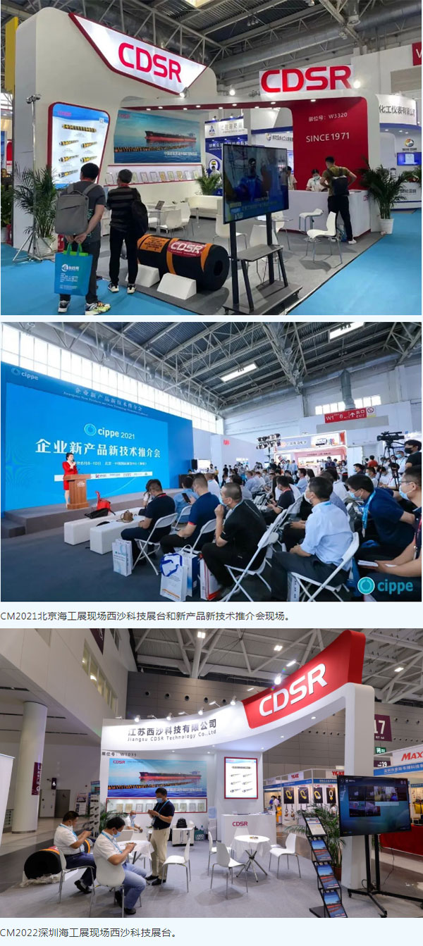 江蘇西沙科技有限公司連續(xù)多年參展北京海工展。2021年6月8日,在第十一屆北京國際海洋工程技術(shù)與裝備展覽會(CM2021)現(xiàn)場舉辦了CDSR專場推介會。會議中,西沙科技輸油管事業(yè)部向各位嘉賓及媒體講解了中國首套國產(chǎn)原油外輸軟管的研發(fā)、取證和產(chǎn)業(yè)化的經(jīng)歷。公司針對用戶需求和外輸作業(yè)中特殊部位軟管,進行了新產(chǎn)品的研發(fā)及新技術(shù)的大量應(yīng)用,獲得客戶一致好評。