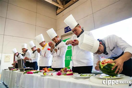 新奇特果蔬工匠技藝展上,來自煙臺工貿(mào)技師學院烹飪技術(shù)系的10位學生為到場觀眾進行果蔬藝術(shù)雕刻及刀功表演雕刻,煙臺市魯菜研究所的中國魯菜烹飪大師包淑圣先生做的“國魂蒙眼刻花”表演贏得活動現(xiàn)場熱烈掌聲,令到場觀眾嘆為觀止,為到場的各位觀眾呈現(xiàn)了一場技藝精湛、精彩絕倫的果蔬雕刻盛宴。
