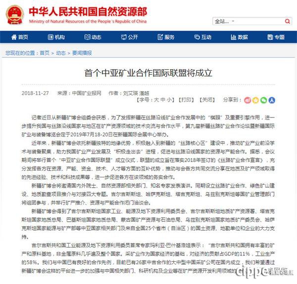 為了發(fā)揮新疆在絲路沿線礦業(yè)合作發(fā)展中的“棋眼”及重要引擎作用,第九屆新疆絲路礦業(yè)合作論壇暨新疆國際礦業(yè)與裝備博覽會期間將舉行首個“中亞礦業(yè)合作國際聯(lián)盟”成立儀式。