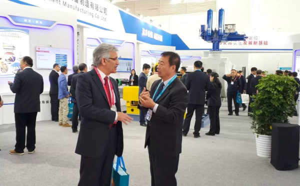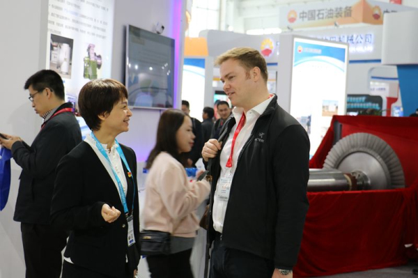 大慶油田副總經(jīng)理王玉華來展會公司展區(qū)現(xiàn)場交流探討