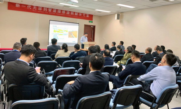 3月27日上午,海虹老人還舉辦了一場別開生面的產(chǎn)品介紹會,為與會客戶介紹了海虹老人新一代無溶劑管道維修涂料解決方案的先進(jìn)技術(shù)、產(chǎn)品、應(yīng)用以及案例。其獨(dú)特性能如:優(yōu)異的耐介質(zhì)滲透性能,針對管道應(yīng)用環(huán)境開發(fā);固化速度快,滿足維修管線回填要求; VOC接近于零,環(huán)境友好深受客戶的好評。