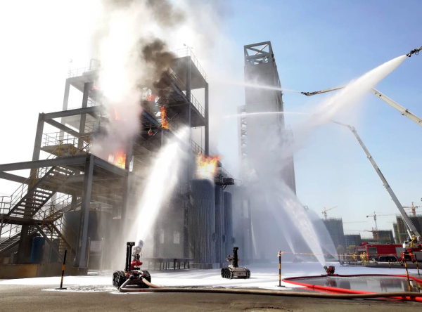 消防滅火偵察機器人由機器人本體、中倍泡沫炮及手持遙控終端組成。主要用于石油化工燃料,油庫、加油站、機場、鐵路等流淌型火災(zāi)。