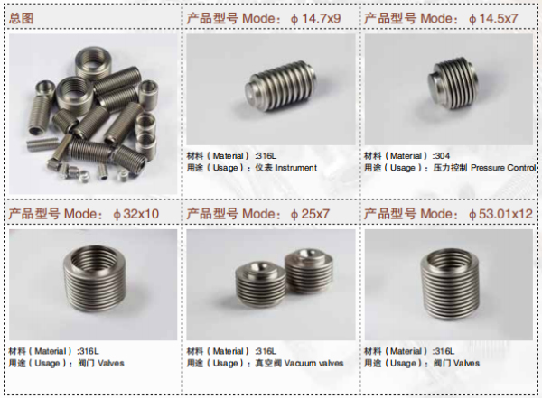 可生產(chǎn)的原材料有:304, 316, 316L, 321, 316Ti, HC276 等。