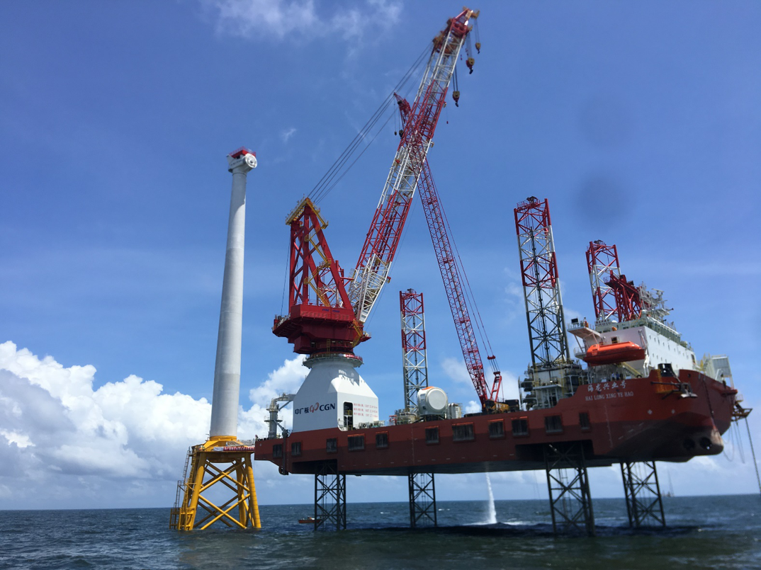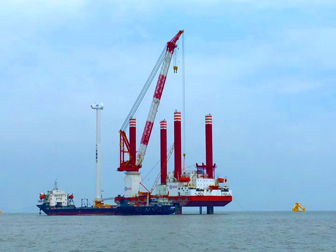KOE-02是為海上風(fēng)電安裝與運(yùn)維、離岸工程支持而設(shè)計(jì)建造的一座平臺(tái)。此船適用于60米水深以內(nèi)的海域作業(yè),滿足中國(guó)目前以及未來10年沿海各風(fēng)電場(chǎng)的安裝與服務(wù)。平臺(tái)的關(guān)鍵配置為精銦海工設(shè)計(jì)制造的JYM-J170變頻動(dòng)齒輪齒條升降系統(tǒng),配置1200噸繞樁回轉(zhuǎn)吊。升降系統(tǒng)最大升降速度為27.6m/h,可實(shí)現(xiàn)平臺(tái)安全、快速的升降作業(yè),升降系統(tǒng)設(shè)計(jì)壽命為2500次升降(25年)。KOE-02已于2019年5月份交付中廣核并投入使用。