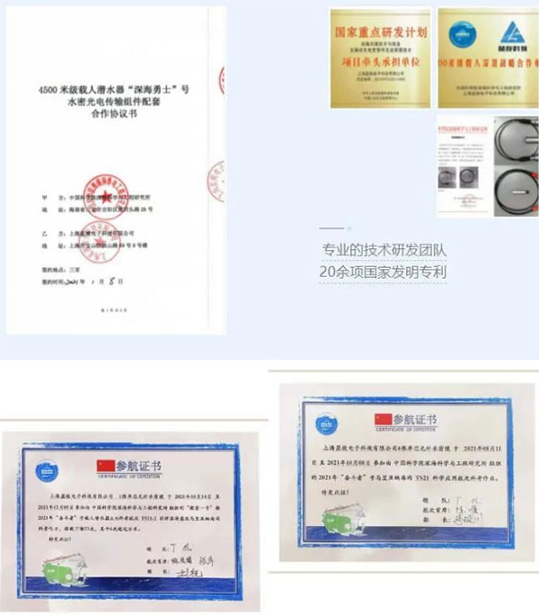 藍(lán)梭科技具備專(zhuān)業(yè)的技術(shù)研發(fā)團(tuán)隊(duì),擁有國(guó)家發(fā)明專(zhuān)利20余項(xiàng),具有專(zhuān)業(yè)和先進(jìn)的加工生產(chǎn)平臺(tái),完備的工藝、質(zhì)量和檢測(cè)保障體系。產(chǎn)品主要應(yīng)用于系統(tǒng)、儀器設(shè)備間的光、電數(shù)據(jù)信號(hào)與電能傳輸。如深潛器、艦船、海洋石油平臺(tái)、海底觀(guān)測(cè)網(wǎng)系統(tǒng)、航天器、陸地機(jī)電通信設(shè)備等。針對(duì)特殊環(huán)境定制具有全海深耐壓密封性能、耐腐蝕性能、抗軸向強(qiáng)拉等特性的特種互連傳輸組件及線(xiàn)纜產(chǎn)品。