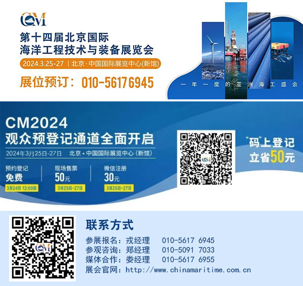3月25日-27日,第十四屆北京國際海洋工程技術(shù)與裝備展覽會(CM2024北京海工展)將在北京•中國國際展覽中心(新館)舉辦,將重點展示海洋油氣、海工裝備、水下機器人、海上風電等領(lǐng)域裝備和技術(shù)。第二十四屆中國國際石油石化技術(shù)裝備展覽會(cippe2024)將同期舉辦。
